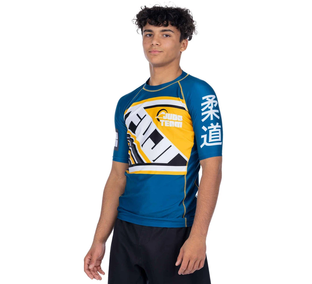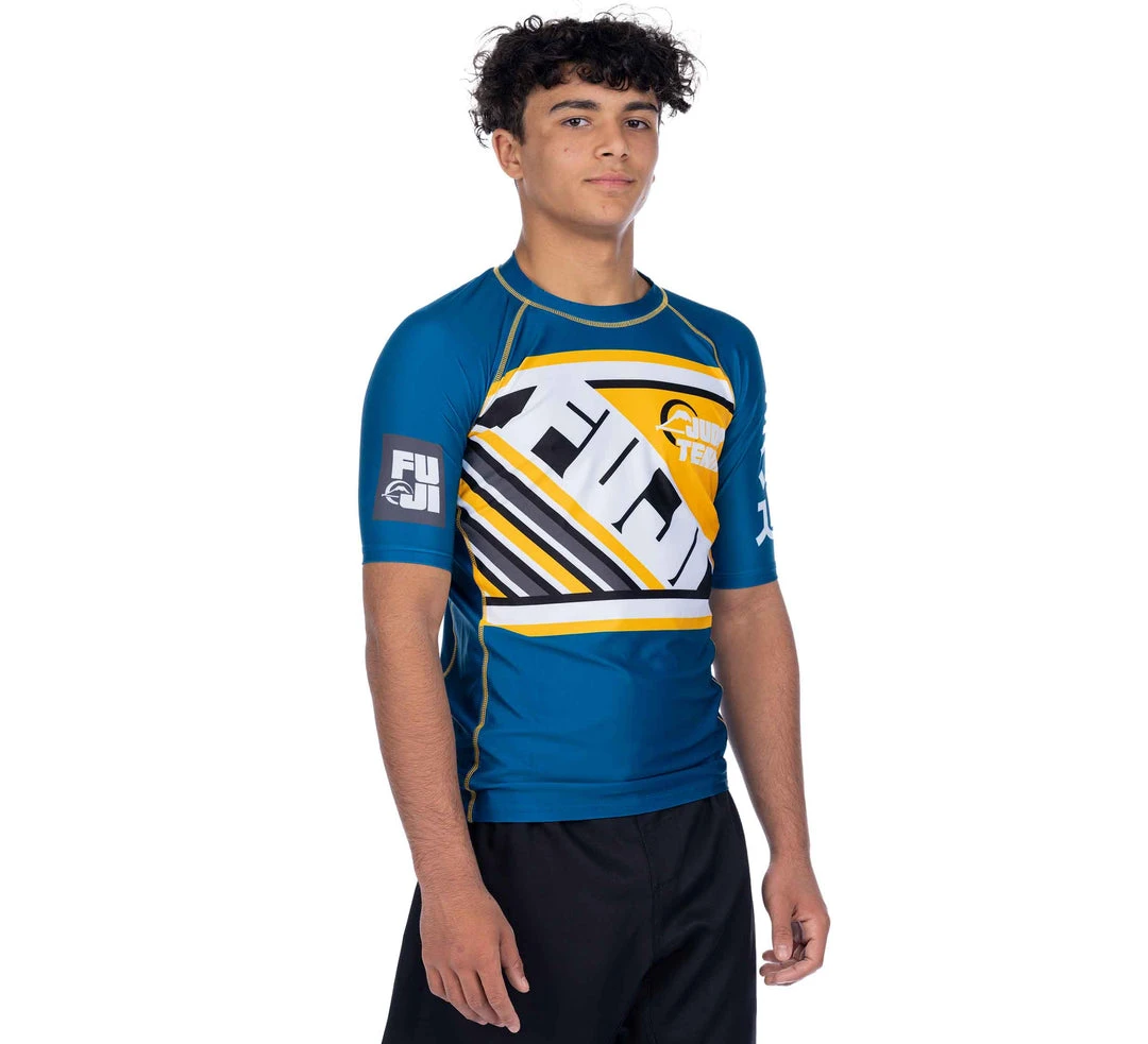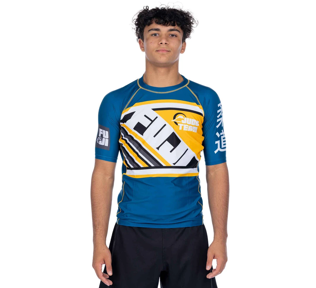 The sky is the limit when it comes to your potential. The FUJI Skyline Rashguard features a dynamic and bold design perfect for the up and coming grappler. Featuring a FUJI print on the front and back, judo design, and a very bold colorway.Â